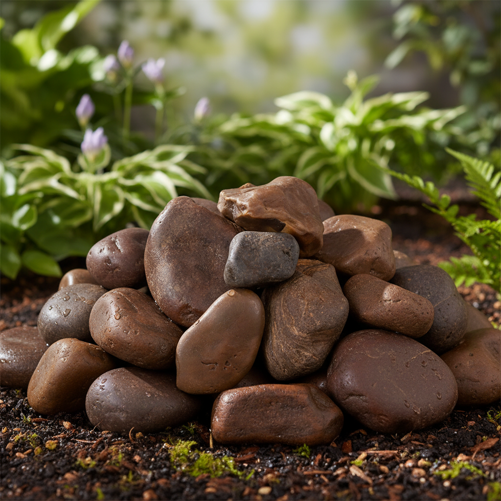 A Pedra Rio Chocolate é um seixo natural de superfície lisa e formato arredondado, com coloração marrom intensa e variações em tons terrosos que remetem à elegância e ao aconchego dos elementos naturais. Formada pela ação contínua da água dos rios, apresenta alta resistência e acabamento refinado.