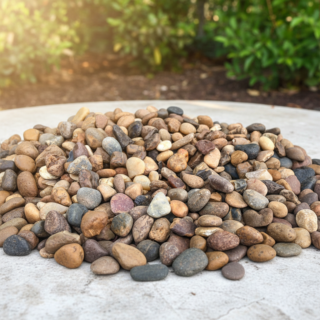 Muito utilizada em jardins ornamentais, canteiros, vasos, caminhos, bordas de plantas e áreas externas, a pedra de rio mesclada valoriza o espaço com um toque rústico e natural. Além do apelo estético, auxilia na drenagem do solo, reduz o surgimento de ervas daninhas e contribui para a conservação da umidade, tornando-se uma excelente opção tanto decorativa quanto funcional.