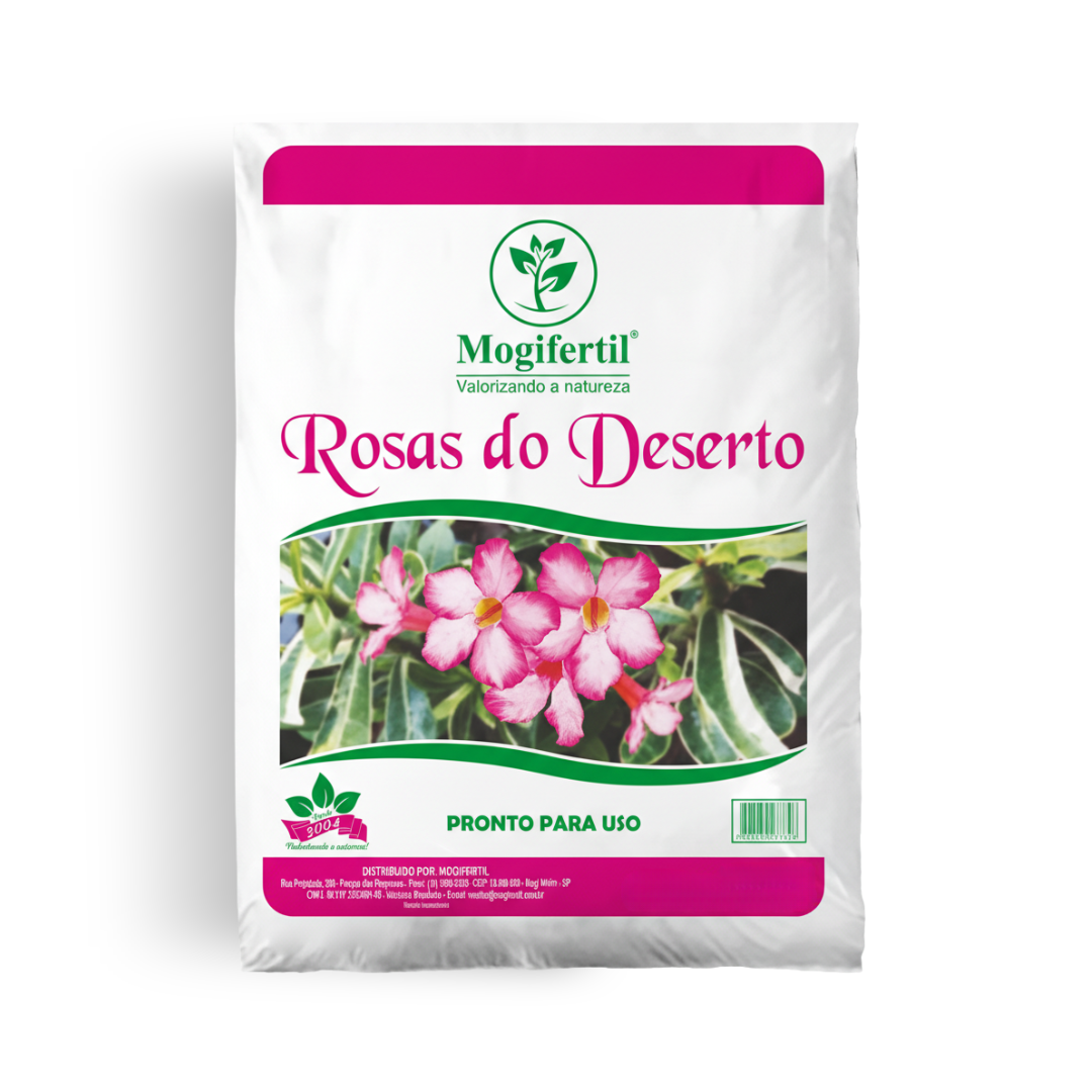 O Substrato Rosas do Deserto Mogi Fertil foi desenvolvido especialmente para proporcionar as condições ideais ao cultivo da rosa do deserto (Adenium). Sua composição equilibrada garante alta drenagem, leveza e excelente aeração, fatores essenciais para o bom desenvolvimento das raízes e do caudex.